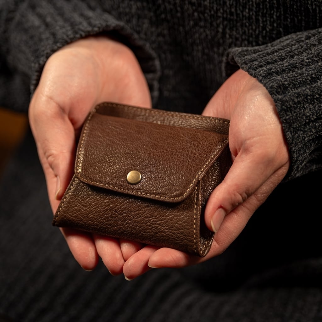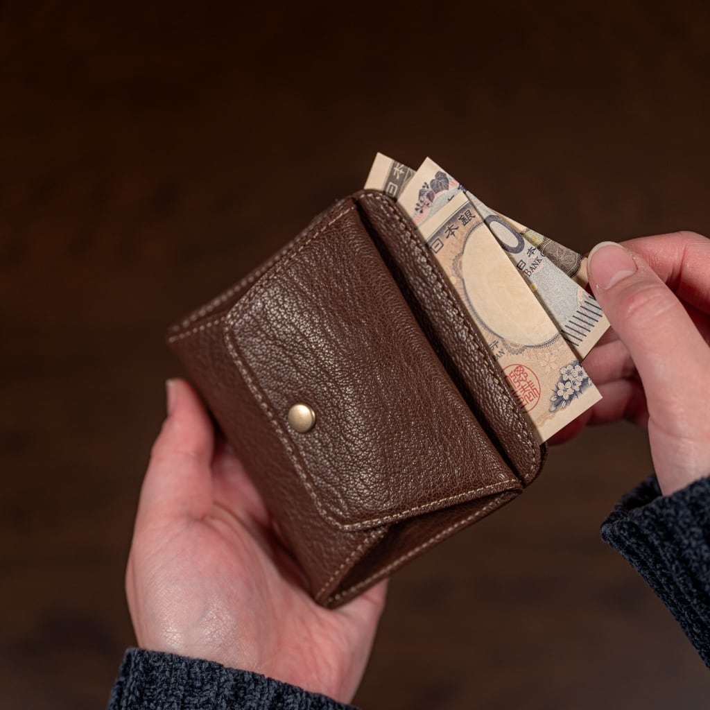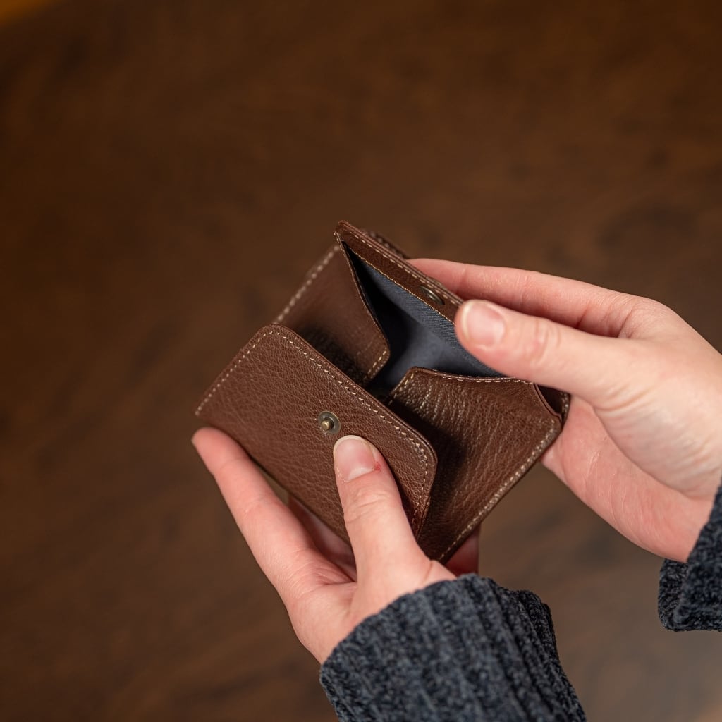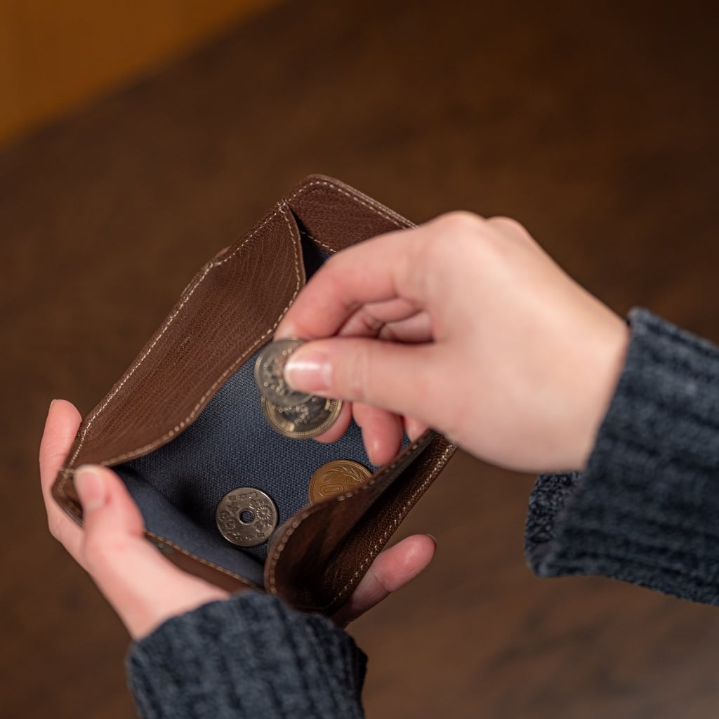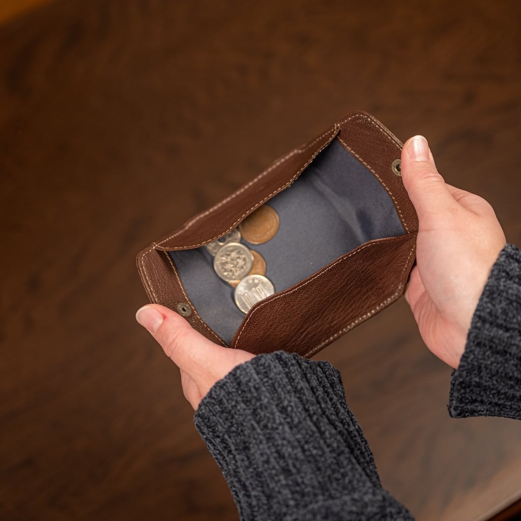 小銭入れはホックで開閉、小銭が一目瞭然で判別が楽です