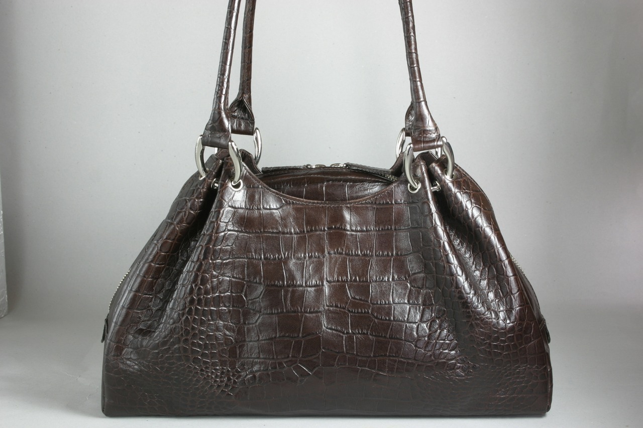 ワイルドでクラシックなスタイルが魅力の牛革ワニ型押しプリセギャザーボストン。